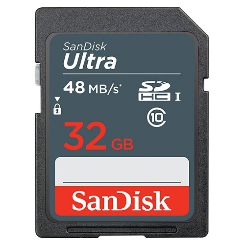Карта памяти SDHC 32GB Sandisk Class 10 Ultra UHS-I 48MB/s. Используется преимущественно в фотоаппаратах и видеокамерах, но будет работать и в любом другом гаджете с поддержкой формат SDHC.