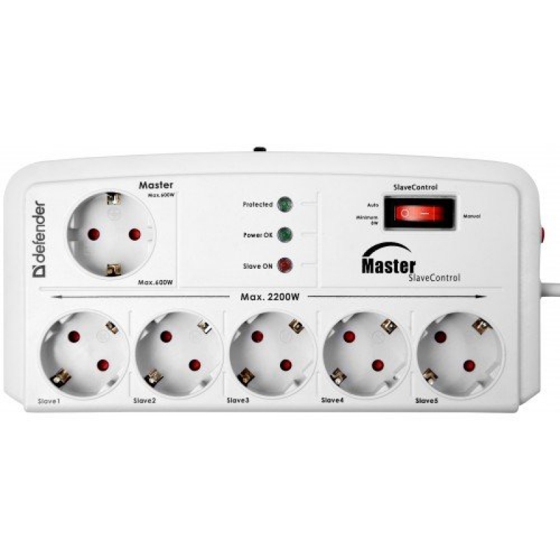 Сетевой фильтр DEFENDER DFS801, 6 розеток, белый, 2м.
