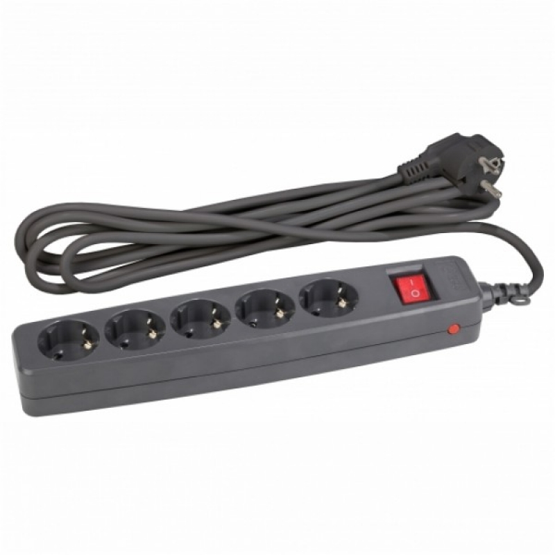 Сетевой фильтр ЭРА SF-5es-4m-B, 5 гнезд, выкл., защитные шторки, заземление, черный, 4 м., (20/360)