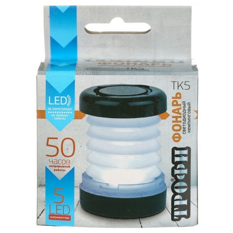 Фонарь TK5 ТРОФИ. Светодиодный кемпинговый фонарь: 5 белых светодиодов, складной корпус, складная ручка для переноски и подвешивания, 3 x AAA (в комплект не входят) (1/50)