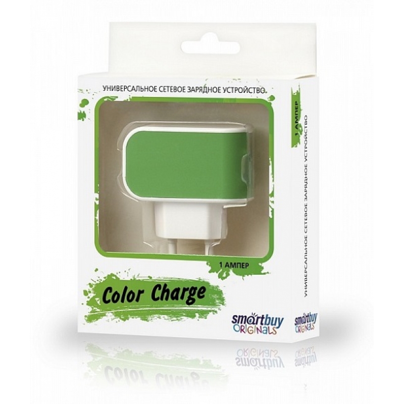 Адаптер сетевой SMARTBUY Color Charge, зелёное. Сила тока 1А, 1хUSB порт