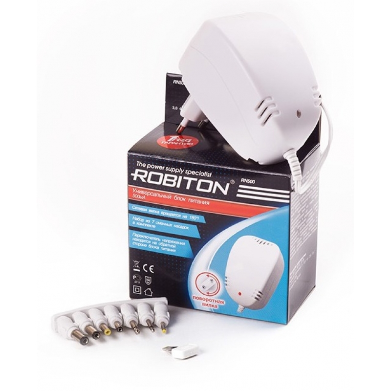 Robiton RN500 - универсальный блок питания 500мА с вращающейся на 180 градусов сетевой вилкой.
