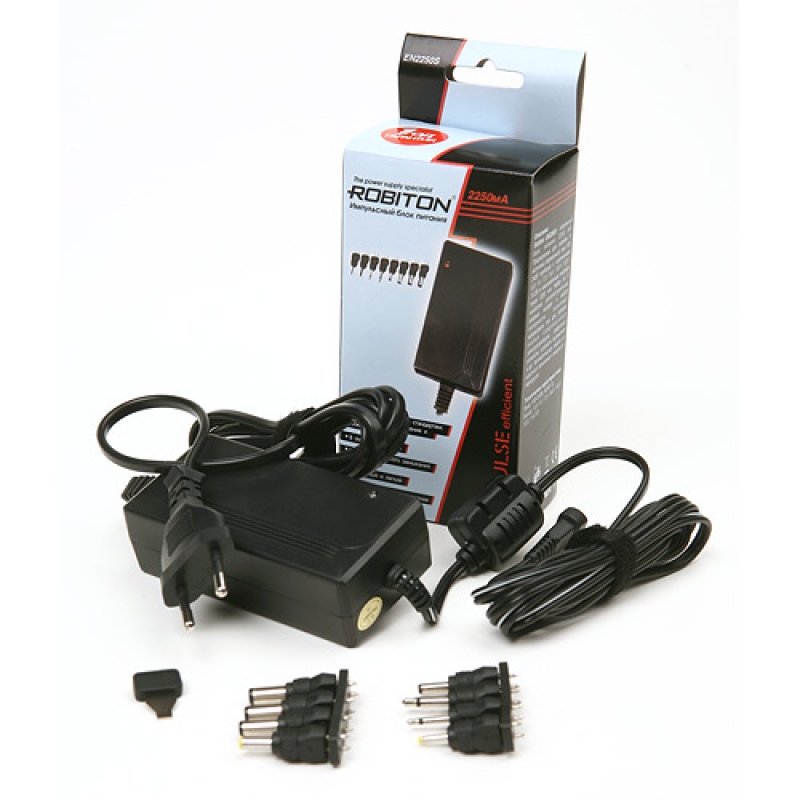 Блок питания 2250мА. Импульсный 3/4,5/5/6/7,5/9/12В 8 сменных штекеров и разъем Female USB