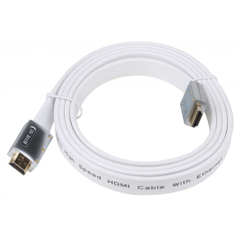 Кабель AOPEN HDMI 19M/M 1.4V+3D/Ethernet, белый, металлические коннекторы, позолоченные контакты, 5 м., плоский, Flat Top Quality