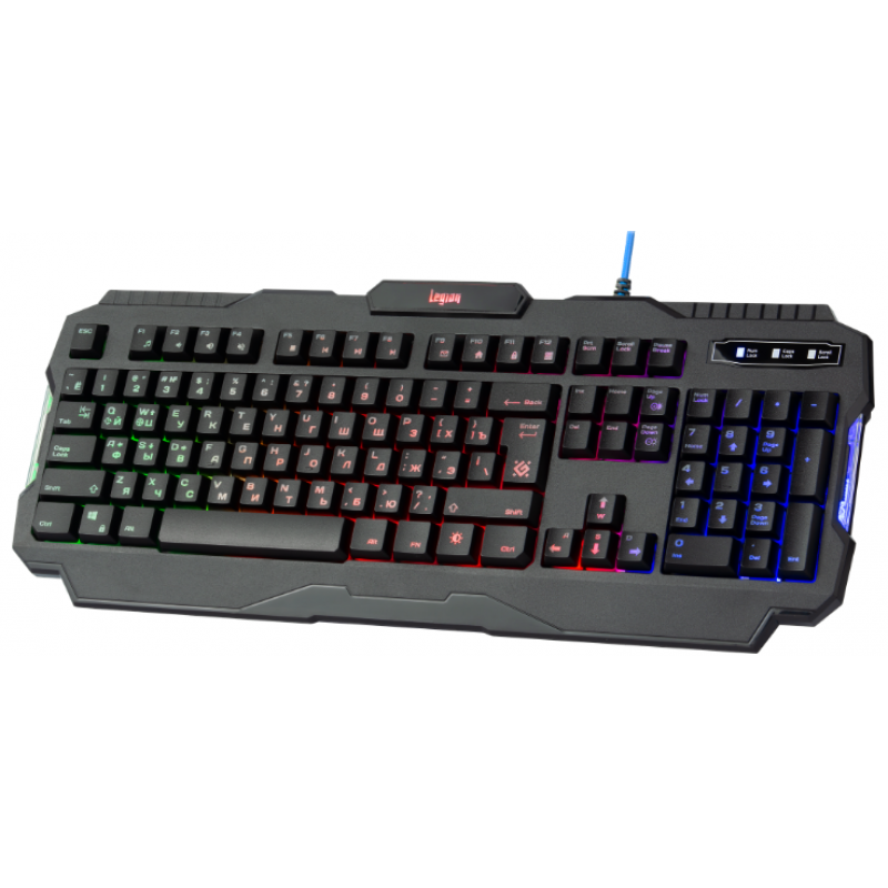 Игровая клавиатура DEFENDER Legion GK-010DL мембранного типа оснащена 104 кнопками с возможностью программирования 12 кнопок с комбинациями макросов, которые упрощают работу пользователя в игровых и офисных приложениях. Модель отличается эффективной защитой от влаги и высокой производительностью. Устройство оснащено кейкапами с мягким ходом и оптимальным откликом, что дает возможность использовать модель для решения игровых и офисных задач. Встроенная подсветка регулируется по степени интенсивности и имеет несколько режимов работы. Прочный эластичный USB-кабель надежно защищен от истирания и перегибов тканевой оплеткой, что продлевает срок эксплуатации устройства.