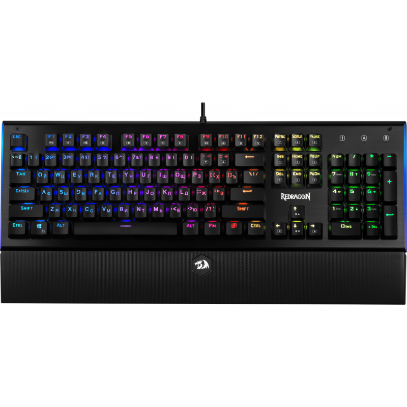 Программируемая RGB подсветка с регулируемой яркостью и дополнительная подсветка сторон! Стильное решение для тех, кто ценит удобство и надежность. Съемная текстурная подставка под запястья для комфортной игры, полный набор игровых функций и горячие клавиши для приложений.