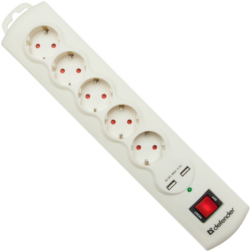 Сетевой фильтр DEFENDER DFS951. 5 розеток с заземлением. Защита от перегрузки и короткого замыкания.