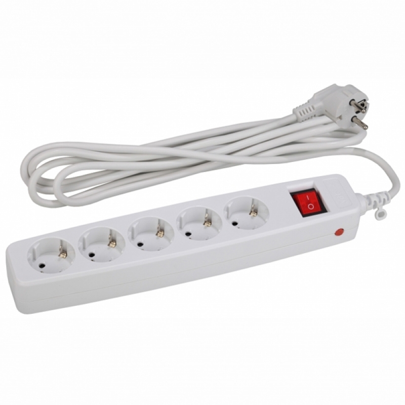 Сетевой фильтр ЭРА SF-5es-4m-W, 5 гнезд, выкл., защитные шторки, заземление, белый, 4 м., (20/360)