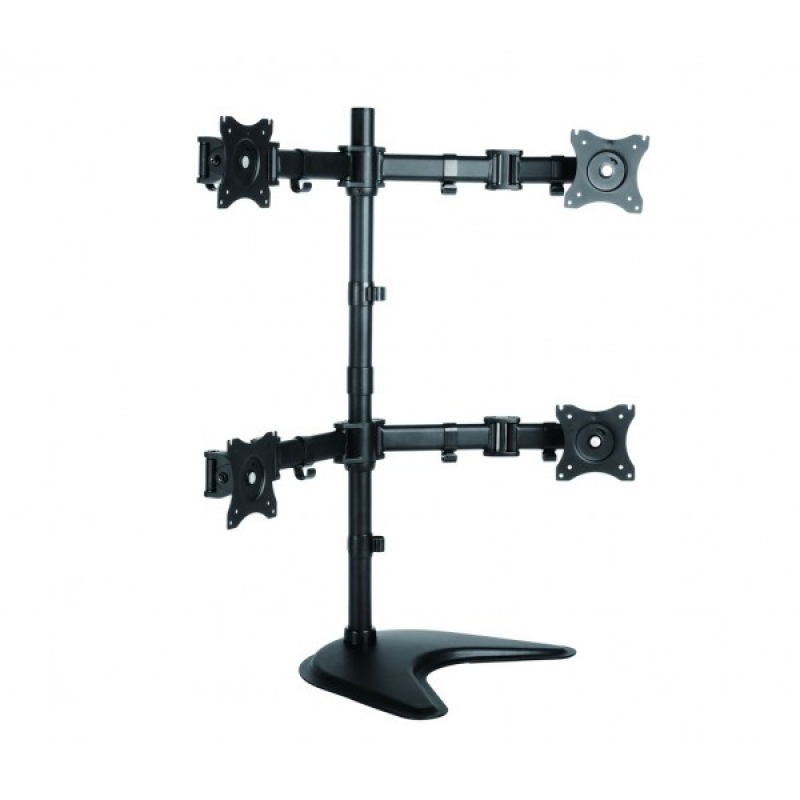 Наклонно-поворотный настольный кронштейн iTech MBS-22M black для четырех мониторов с диагональю до 26 дюймов, максимальный вес монитора 8 кг, пять степеней свободы, наклон ±45°, поворот 180°, 3D вращение, вылет от 35 до 363 мм, регулируемое расстояние по высоте до 810 мм, максимальный стандарт VESA 100x100, цвет черный.