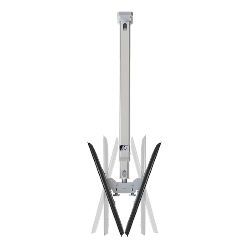 - подходит для телевизоров и мониторов с диагональю от 32" до 55"; - расстояние от потолка: 1150-2000 мм; - стандарт VESA: 200x100, 200х200, 300х300, 400x200, 400x400, 600x400 мм; - угол наклона: -2°/+20°; - угол поворота: ±360°; - максимальная нагрузка: 56,8 кг.