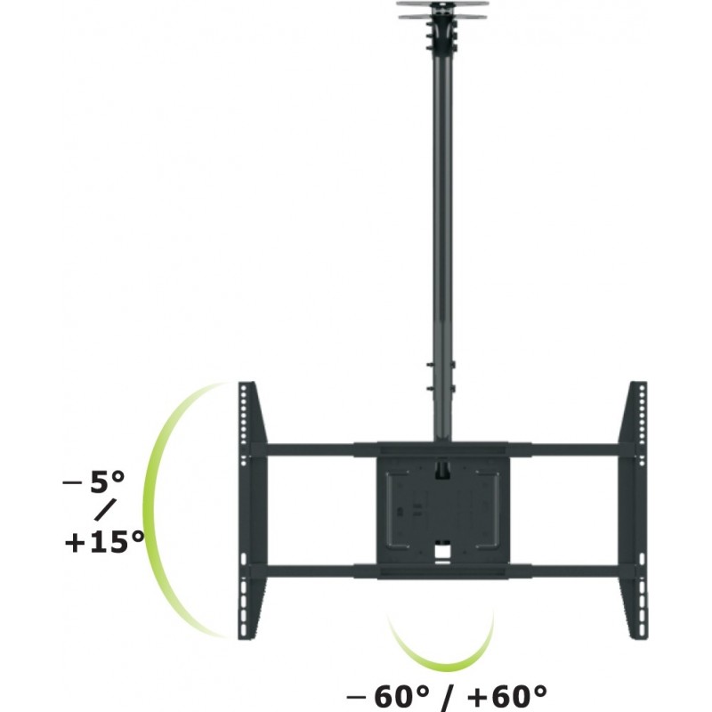 Потолочный наклонно-поворотный кронштейн для телевизора NBT560-15 предназначен для панелей с диагональю от 37 дюймов, максимальная нагрузка 65 кг, регулируемое расстояние по высоте 725-1530 мм, поворот 30°, наклон 15°, возможность монтажа на наклонную поверхность, максимальный стандарт VESA 600X400, цвет- черный