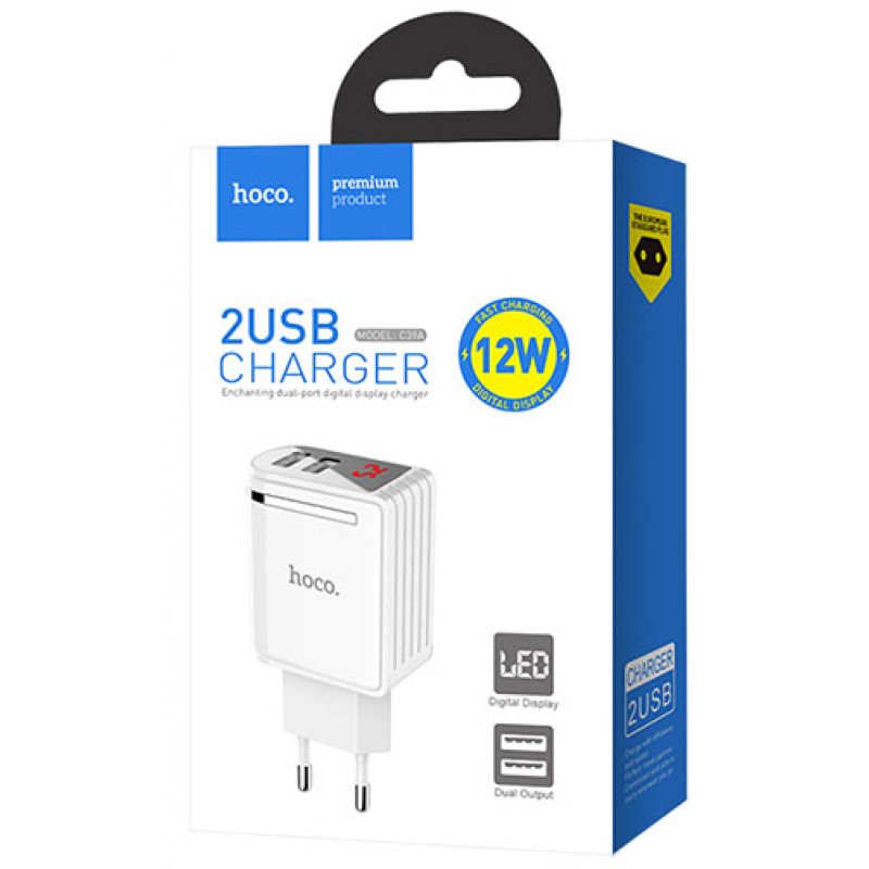 C39A Enchanting зарядное устройство с двумя портами USB и LED цифровым дисплеем EU штекер 2.4A 12W выход многоуровневая защита